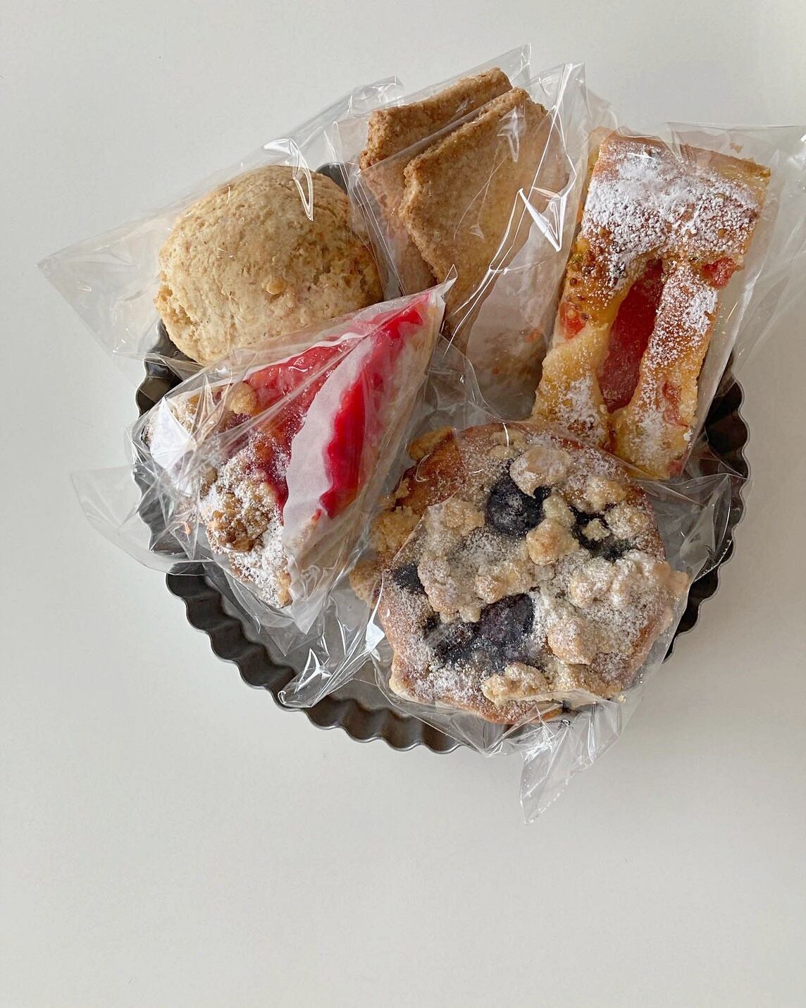 国産小麦とよつ葉バターで作るシンプルなスコーンです。きび砂糖の甘さでそのままでも美味しく召し上がっていただけます。軽くリベイクして、お好みのジャムやクリームと。無塩バターと粗塩のコンビもおすすめです。