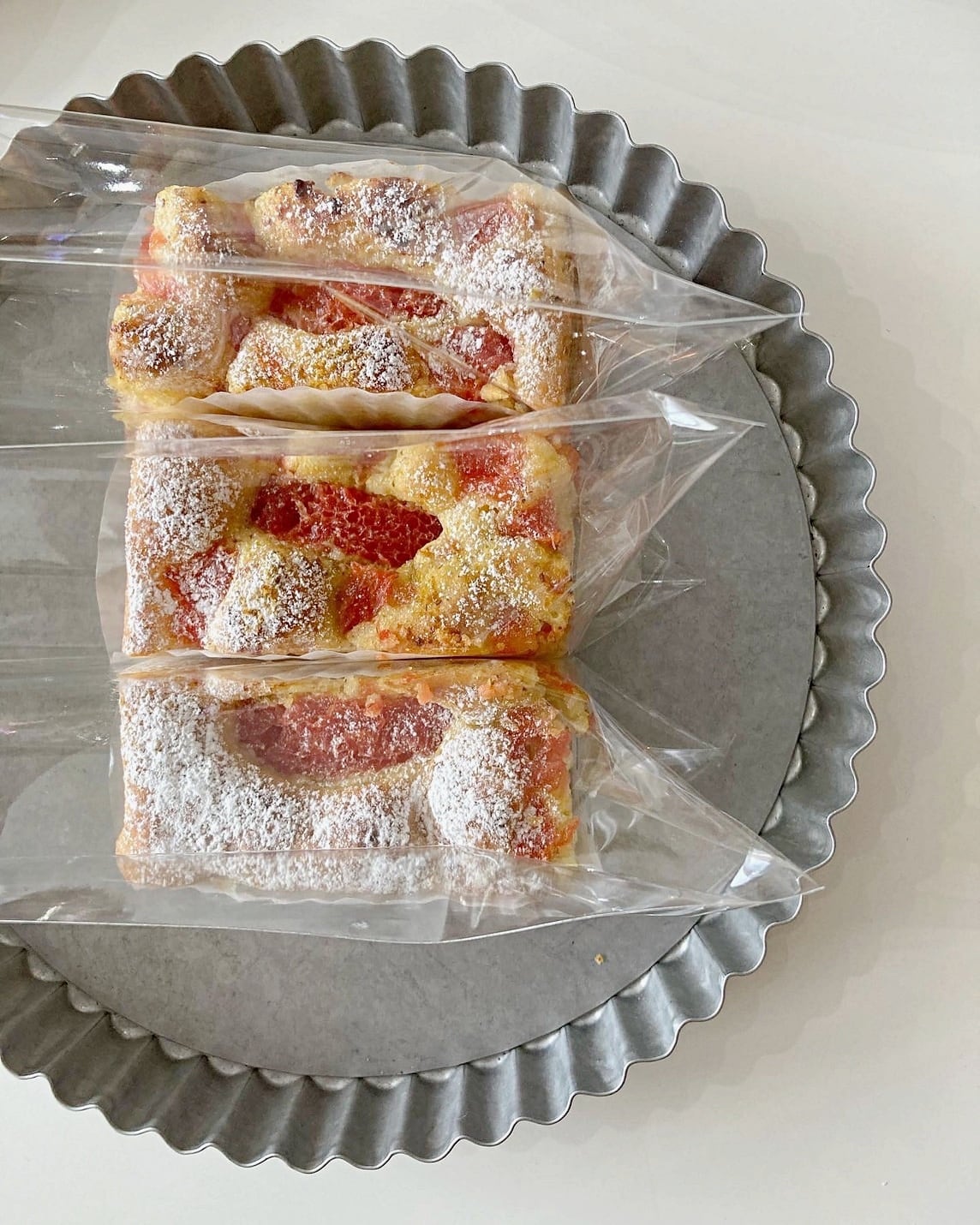 ヨーグルトベースのあっさりした生地にグレープフルーツの果肉をあわせ、程良い酸味のさっぱりとしたケーキにしました。よく冷やしてお召し上がりください。